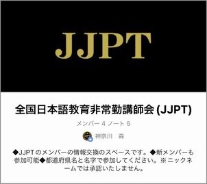 ▪オープンチャットは、LINEのアカウントがあれば参加できます。 ▪JJPTのメンバーが気楽に情報交換ができる空間として解説しました。 ▪JJPTのメンバーは、参加自由です。 ▪参加する際、都道府県名と名字(例 神奈川 森)で参加してください。 ▪下の画像をクリックすると、LINEオープンチャットのページにリンクします。 ▪クリックして申請してもらえれば承認いたします。